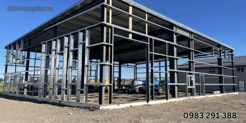 Khung chính (cột, dầm, kèo): Là khung sườn chịu lực của nhà, được chế tạo bằng thép hình hoặc thép tấm gia cường.