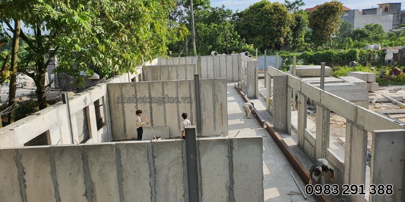 Hoàn thiện công trình: Sau khi các tấm bê tông được lắp ghép hoàn chỉnh, các bước hoàn thiện như đổ trần, làm nền, sơn tường, và các công việc trang trí sẽ được thực hiện.