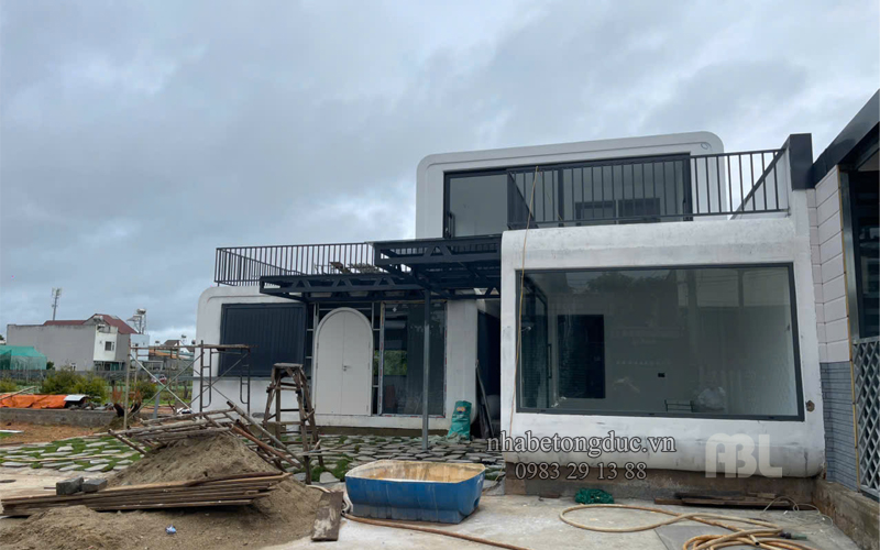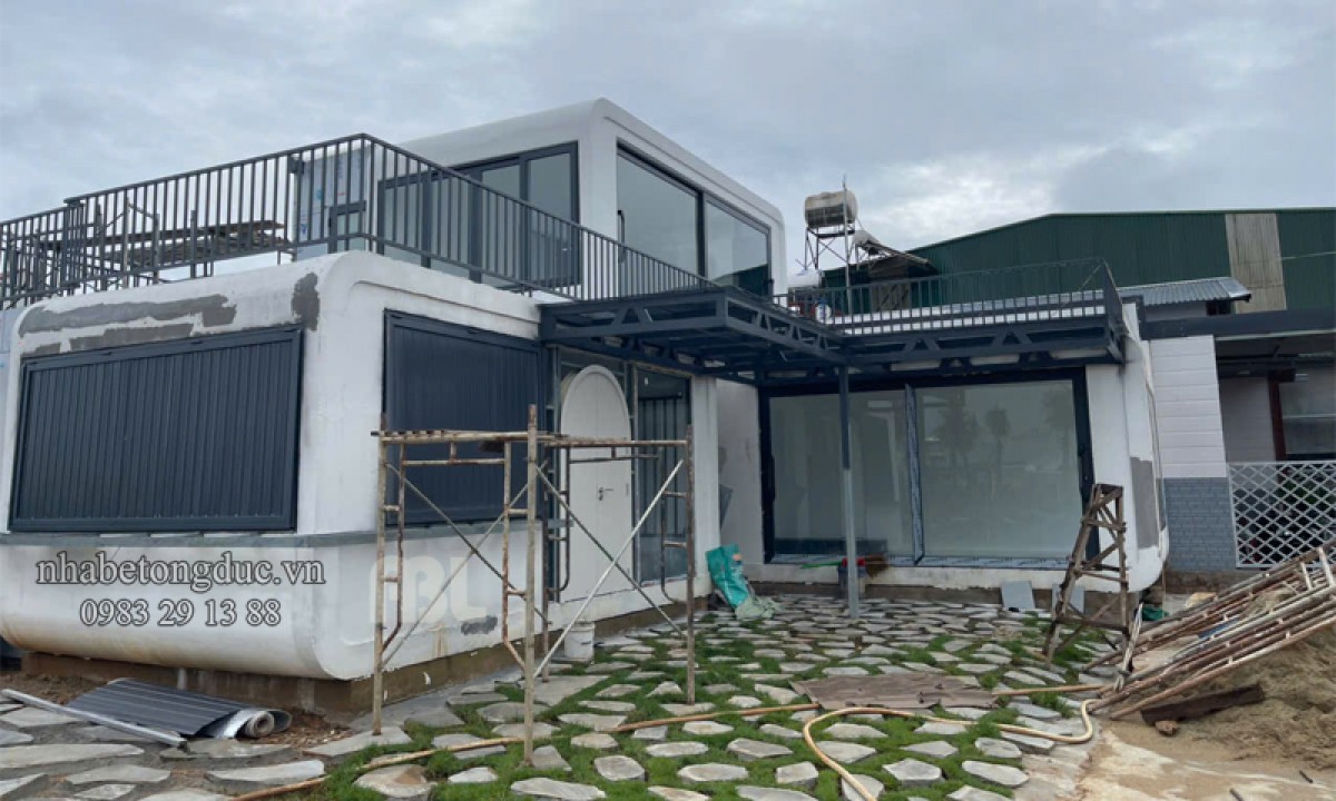 Mẫu nhà vườn 2 tầng đẹp làm từ 3 modules nhà bê tông đúc V01 – anh Đạt