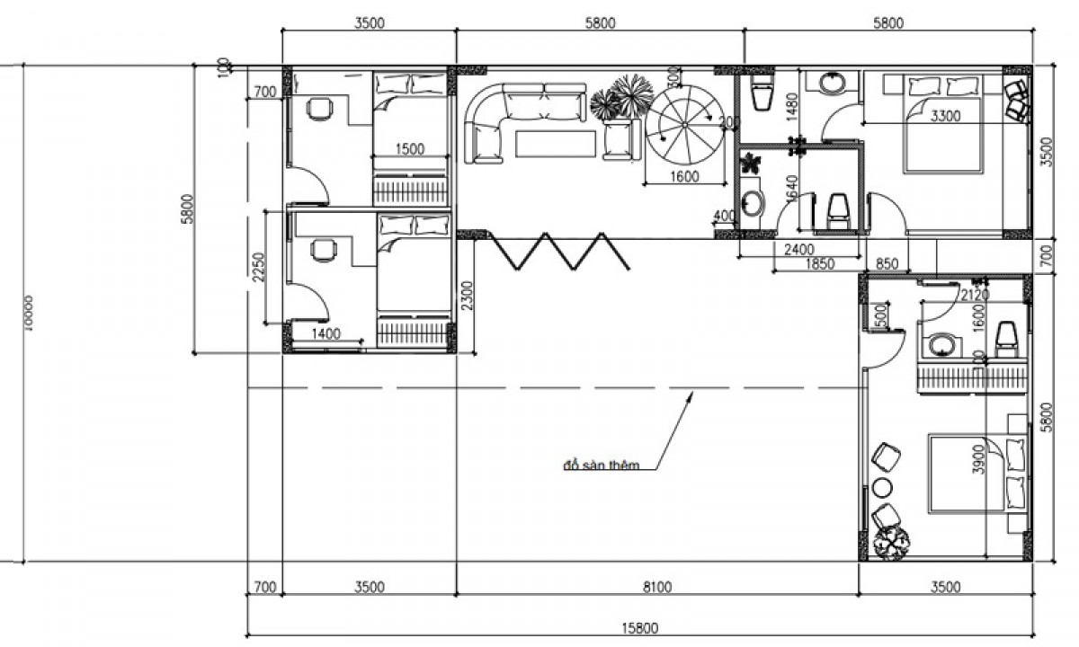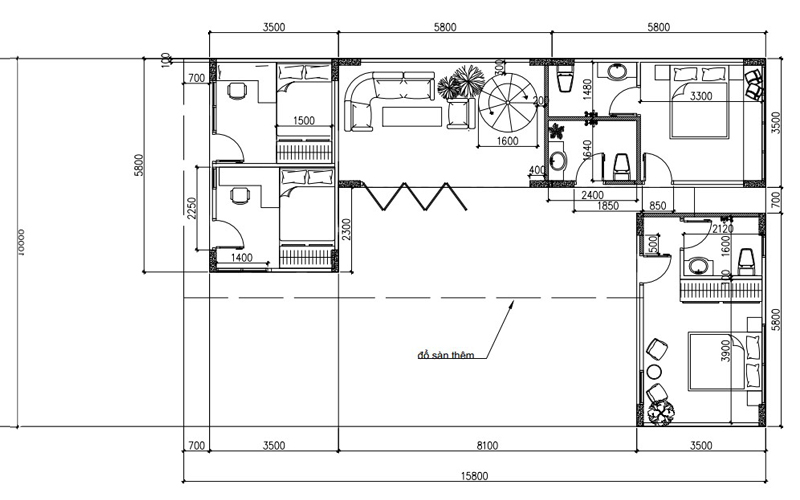 Đây là cách bố trí giúp tạo nên một không gian sống tiện nghi, phù hợp cho các gia định có nhiều thành viên.