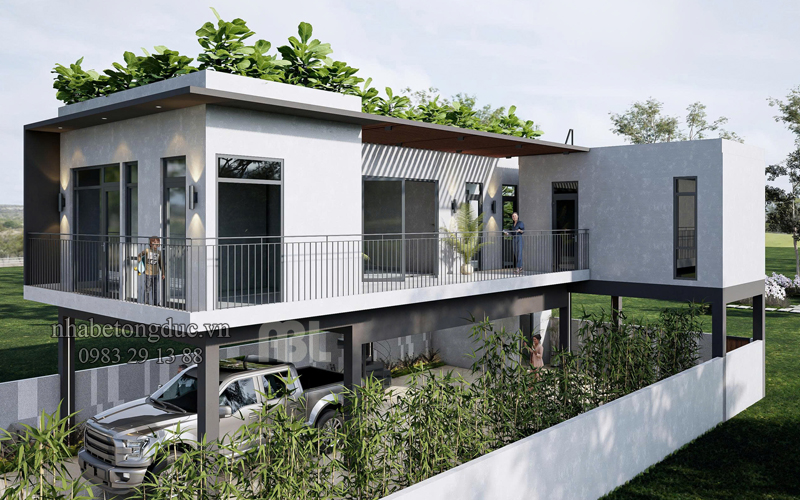 Hình ảnh thiết kế kiến trúc biệt thự từ nhà bê tông đúc sẵn.