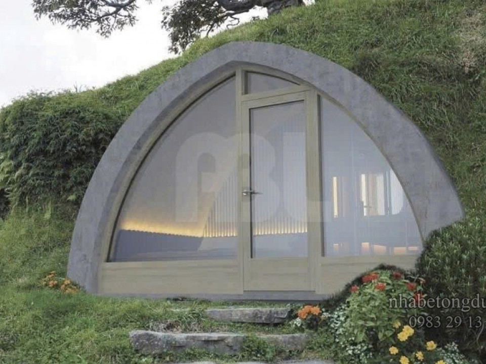 Bungalow dạng boongke khi được lấp đất.