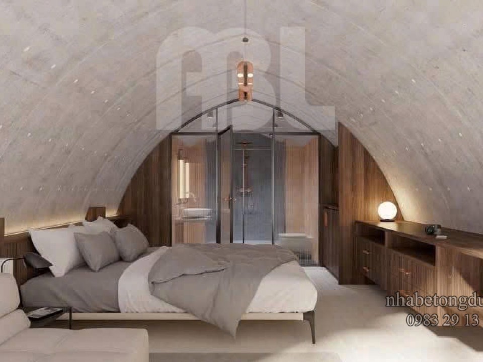 Thiết kế nội thất mẫu bungalow dạng vòm.