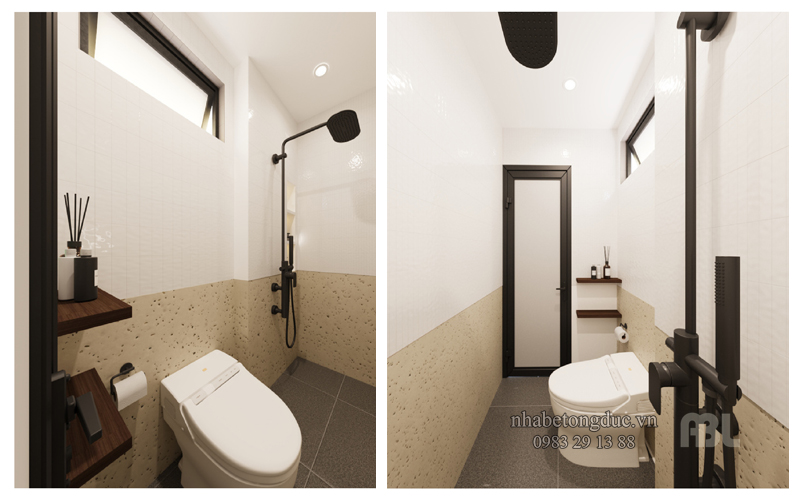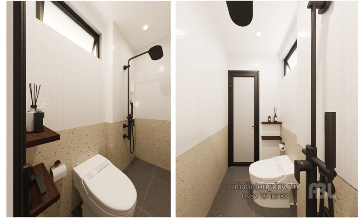 Một WC tầng 2: phục vụ tiện lợi, đặc biệt phù hợp với gia đình có trẻ nhỏ hoặc người cao tuổi.