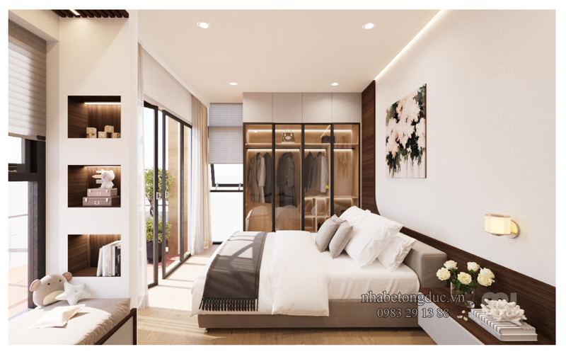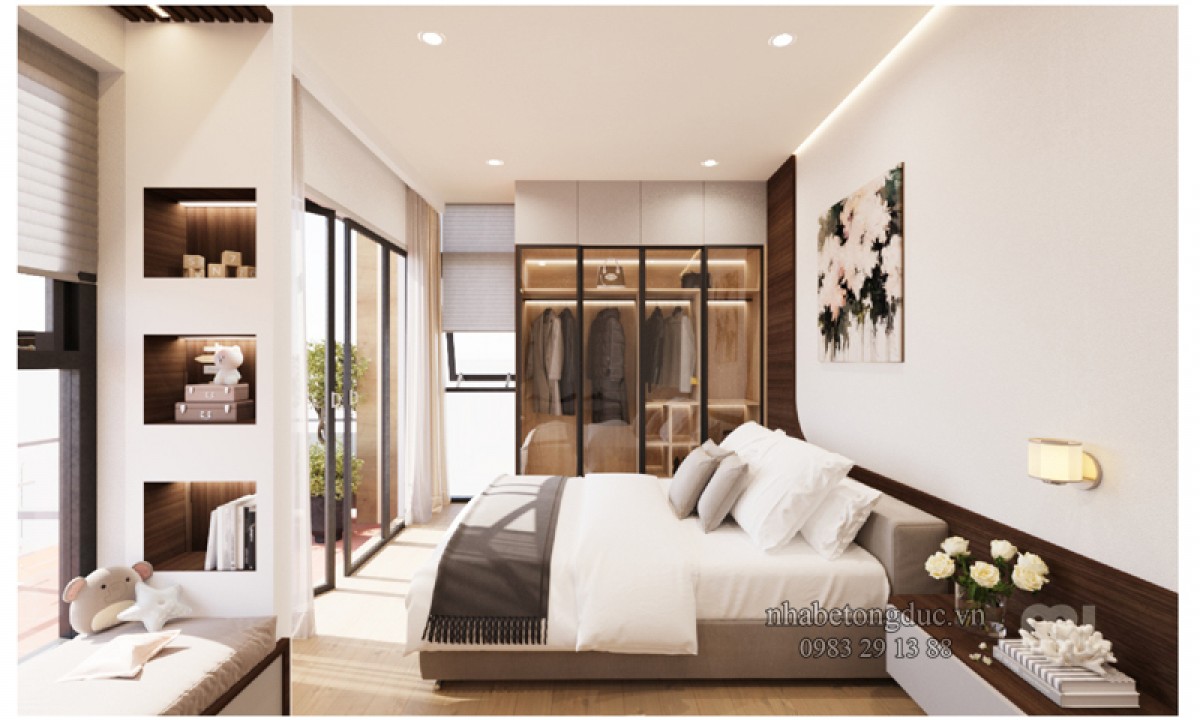 Phòng ngủ tầng 2: được bố trí khoa học, mang đến không gian nghỉ ngơi yên tĩnh, riêng tư.