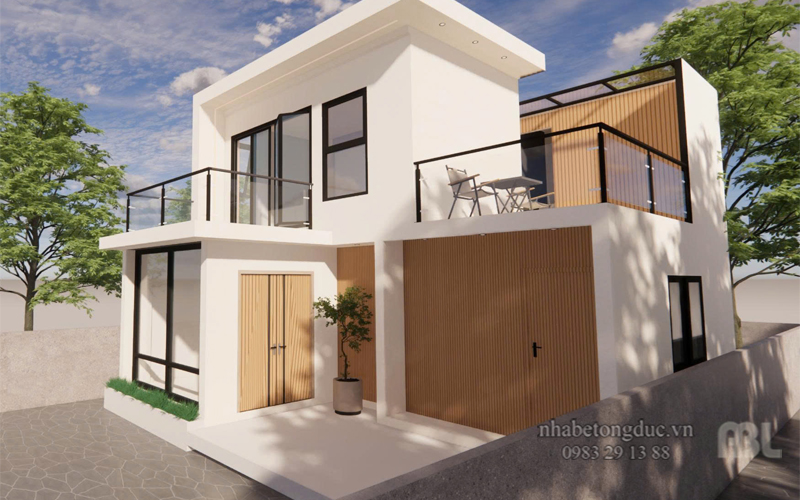 Mẫu nhà đẹp 2 tầng, 2 phòng ngủ dùng 3 modules nhà bê tông đúc sẵn - anh Thiện