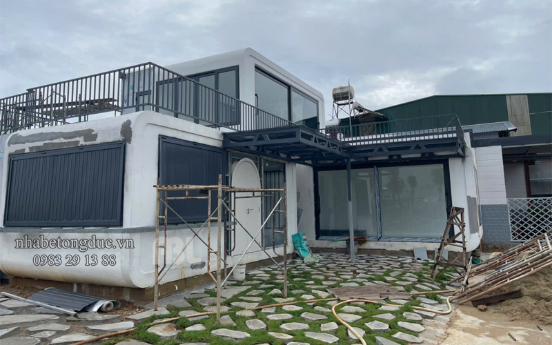 Mẫu nhà vườn 2 tầng đẹp làm từ 3 modules nhà bê tông đúc V01 – anh Đạt