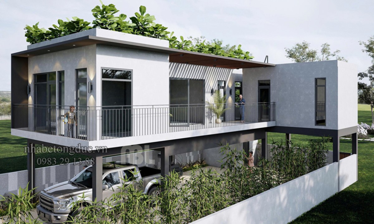 Hình ảnh thiết kế kiến trúc biệt thự từ nhà bê tông đúc sẵn.