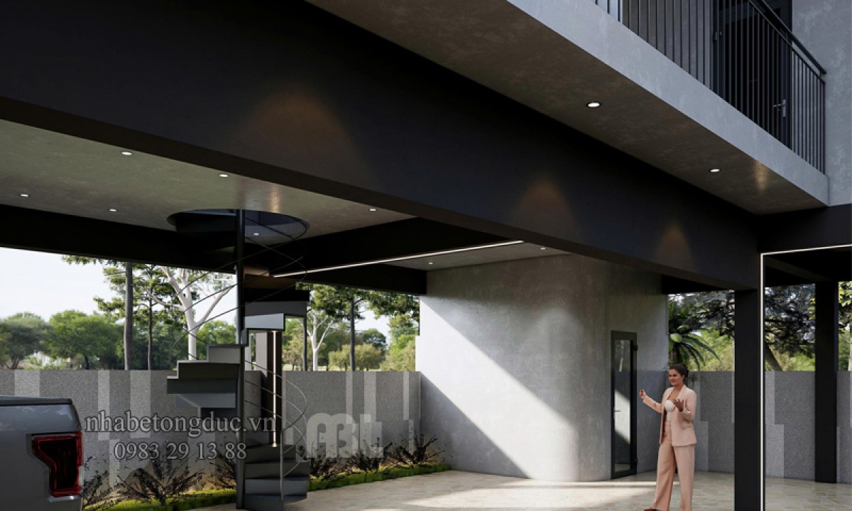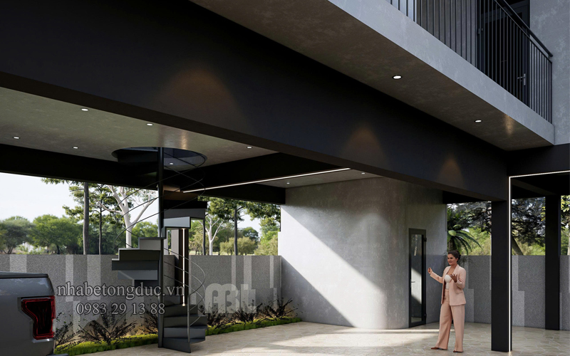 Một trong những điểm nhấn đặc biệt của mẫu biệt thự từ nhà bê tông đúc sẵn là sử dụng cầu thang xoắn ốc – vừa giúp tiết kiệm diện tích, vừa tạo nét kiến trúc hiện đại. Thiết kế mang đậm nét đẹp của biệt thự nghỉ dưỡng cuối tuần, đã biến căn nhà này trở thành một điểm nhấn độc đáo, vừa sang trọng, vừa thoáng đãng và mang lại một trải nghiệm sống mới mẻ.